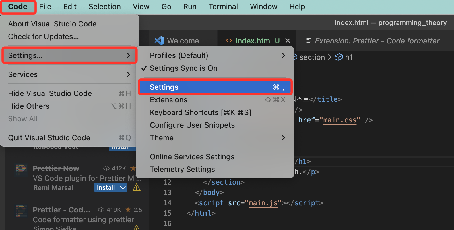 [Visual Studio Code] Mac에서 HTML 파일 저장 시 태그 자동 줄바꿈 등 정리하도록 설정하는 법