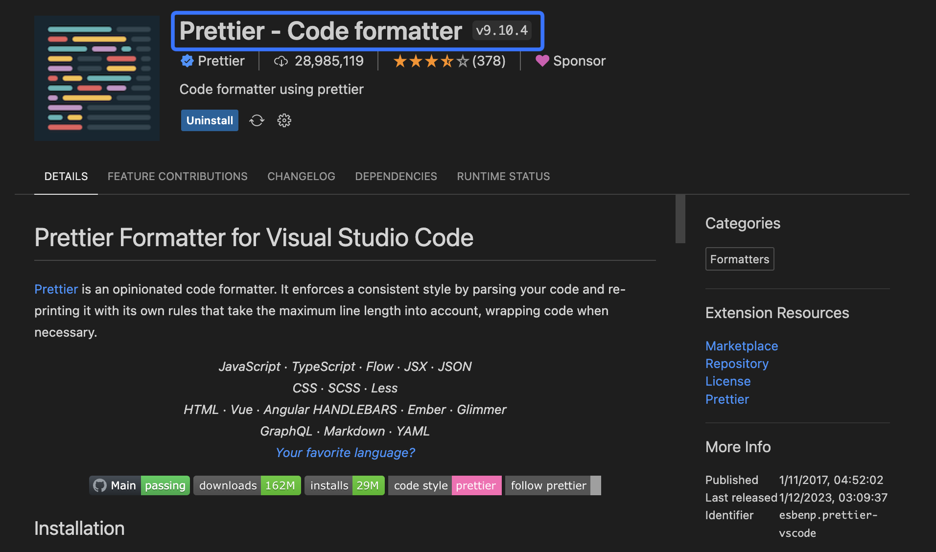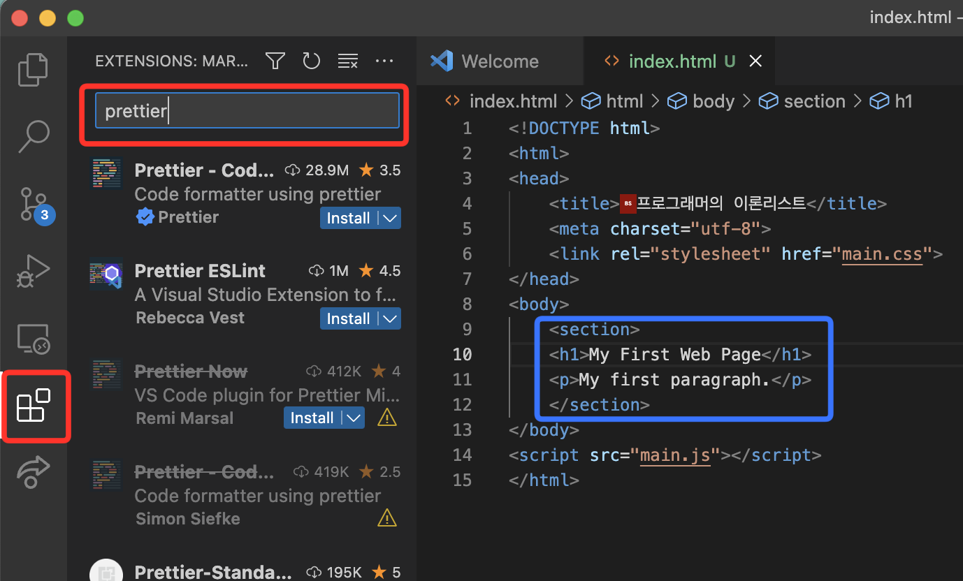 Programming/VSCode 2023. 2. 11. 09:001. Extensions에서 Prettier를 검색해서 Prettier - Code Formatter를 설치합니다.