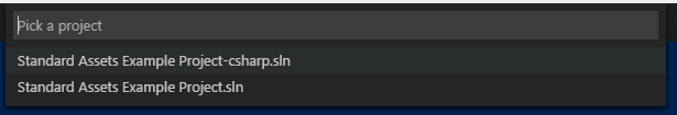 Choose the-CSharpversion of the solution file and VS Code will light up.