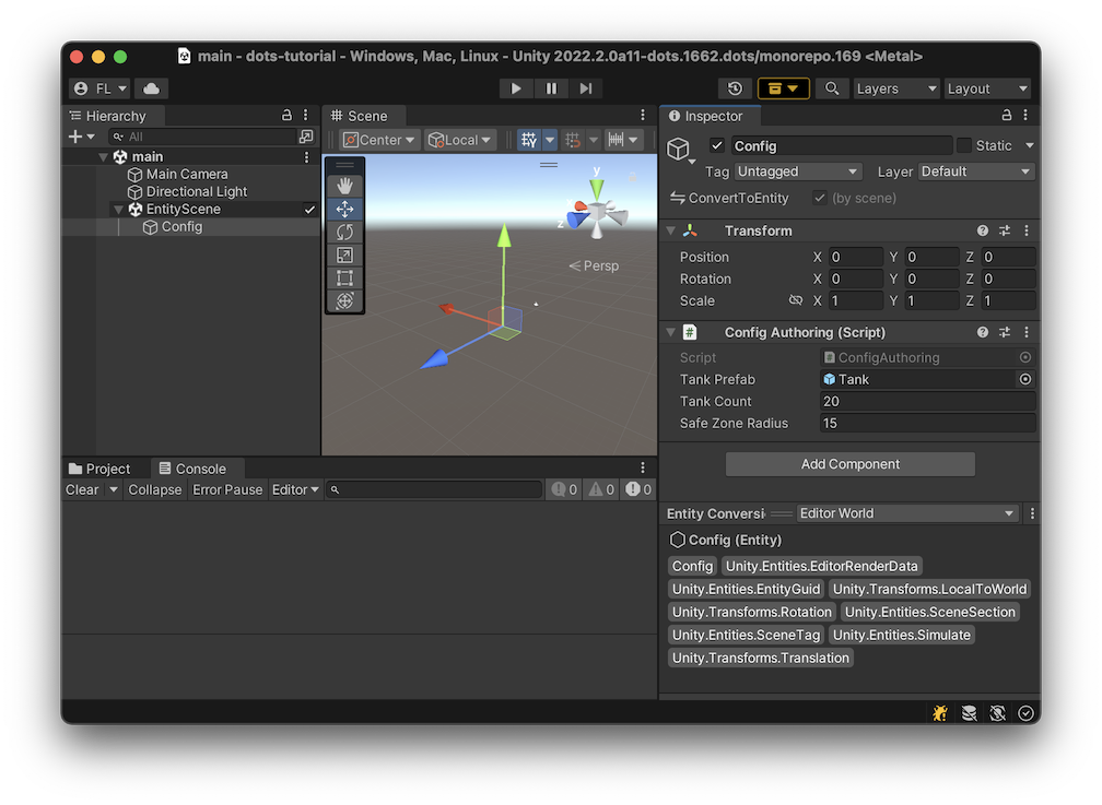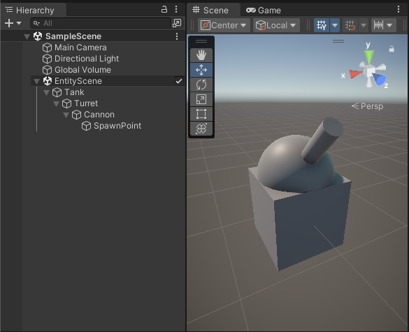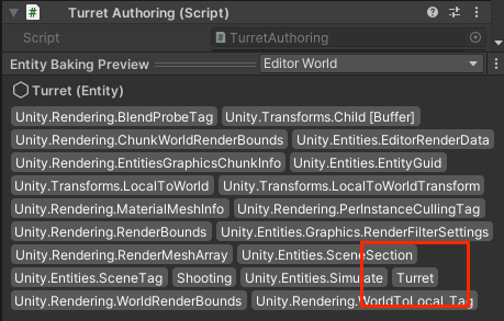 using Unity.Entities; // 이 태그 컴퍼넌트는 "사용 가능한 컴퍼넌트"이기도 합니다. // 이러한 컴퍼넌트들은 엔티티에 존재하는 동안 온/오프 될 수 있습니다. // 이렇게 하는 것이 컴퍼넌트를 추가하거나 제거하는 것보다 훨씬 효율적입니다. struct Shooting : IComponentData, IEnableableComponent { } - "Scripts/Authoring" 폴더에 있는 "TurretAuthoring.cs" 파일의 내용을 다음과 같이 수정합니다: