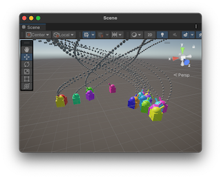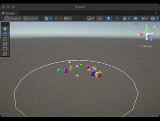 +// 슈팅 태그 컴퍼넌트의 요구로 인해 안전 영역에 있는 탱크에 대해 이 작업이 실행되는 것을 사실상 방지합니다. +[WithAll(typeof(Shooting))] [BurstCompile] partial struct TurretShoot : IJobEntity { [ReadOnly] public ComponentLookup<LocalToWorldTransform> LocalToWorldTransformFromEntity; public EntityCommandBuffer ECB; void Execute(in TurretAspect turret) { var instance = ECB.Instantiate(turret.CannonBallPrefab); var spawnLocalToWorld = LocalToWorldTransformFromEntity[turret.CannonBallSpawn]; var cannonBallTransform = UniformScaleTransform.FromPosition(spawnLocalToWorld.Value.Position); cannonBallTransform.Scale = LocalToWorldTransformFromEntity[turret.CannonBallPrefab].Value.Scale; ECB.SetComponent(instance, new LocalToWorldTransform { Value = cannonBallTransform }); ECB.SetComponent(instance, new CannonBall { Speed = spawnLocalToWorld.Value.Forward() * 20.0f }); // 아래 라인은 포탑에서 대포알까지 색을 전파합니다. ECB.SetComponent(instance, new URPMaterialPropertyBaseColor { Value = turret.Color }); } } - 플레이 모드로 들어가면 탱크가 세이프 존 밖으로 나온 후에만 사격합니다. 보기 옵션에서 gizmos가 활성화 되었는지 확인하세요, 그렇지 않으면 흰색 원이 표시되지 않습니다.