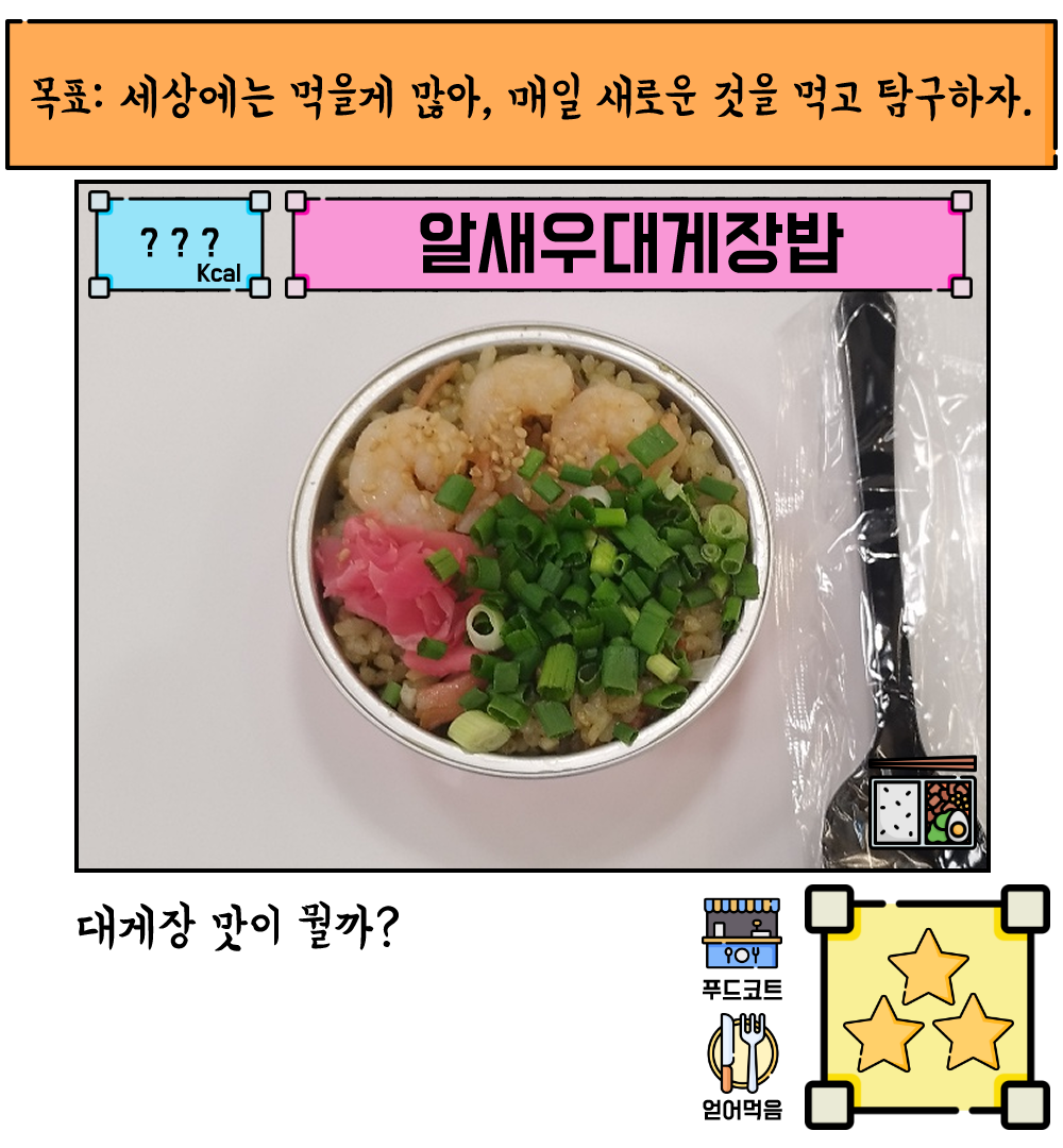 | [달크랩] 알새우대게장밥 ★★★☆☆ (0) | 2023.07.14 |