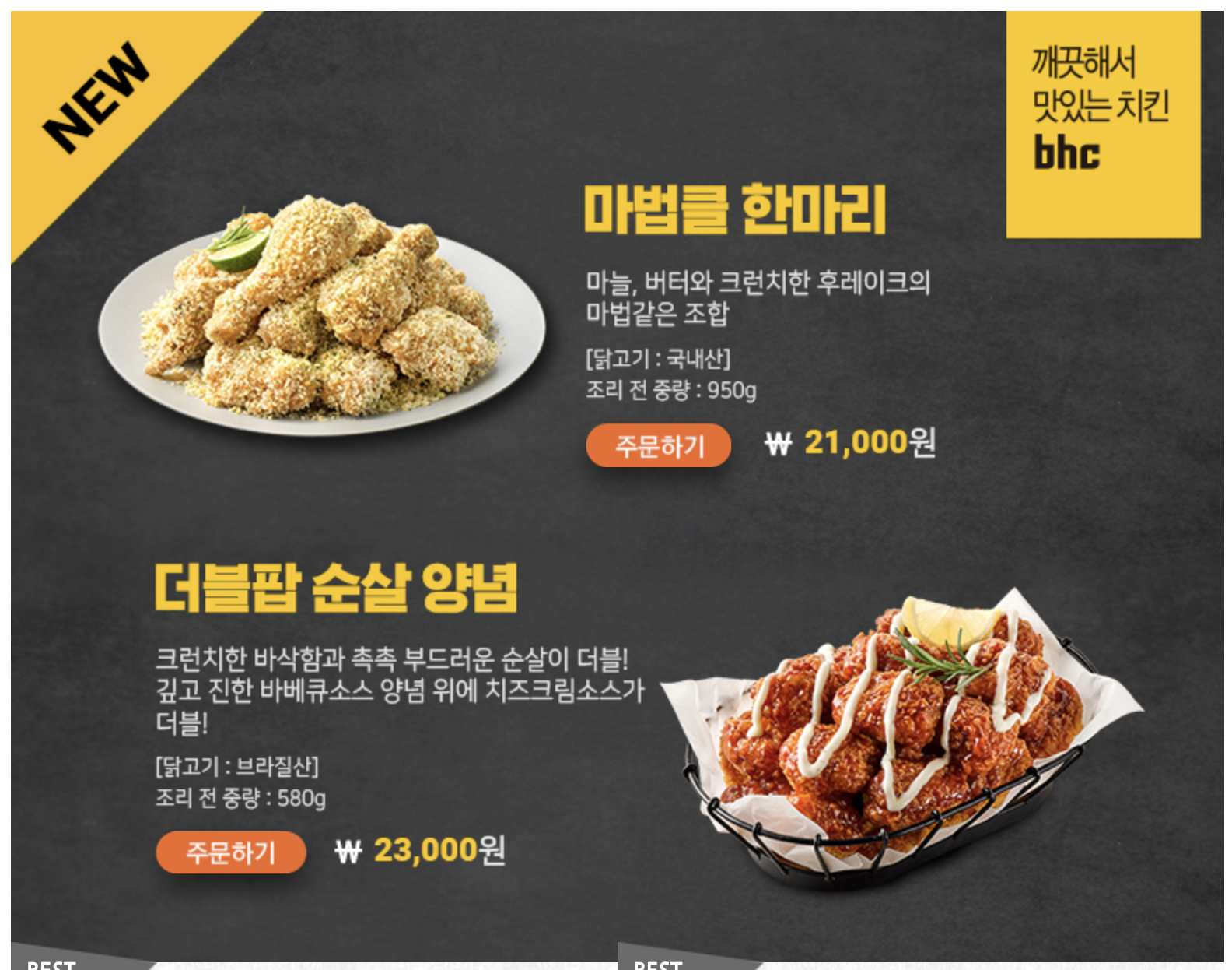 신메뉴: 마법클 한마리, 더블팝 순살양념