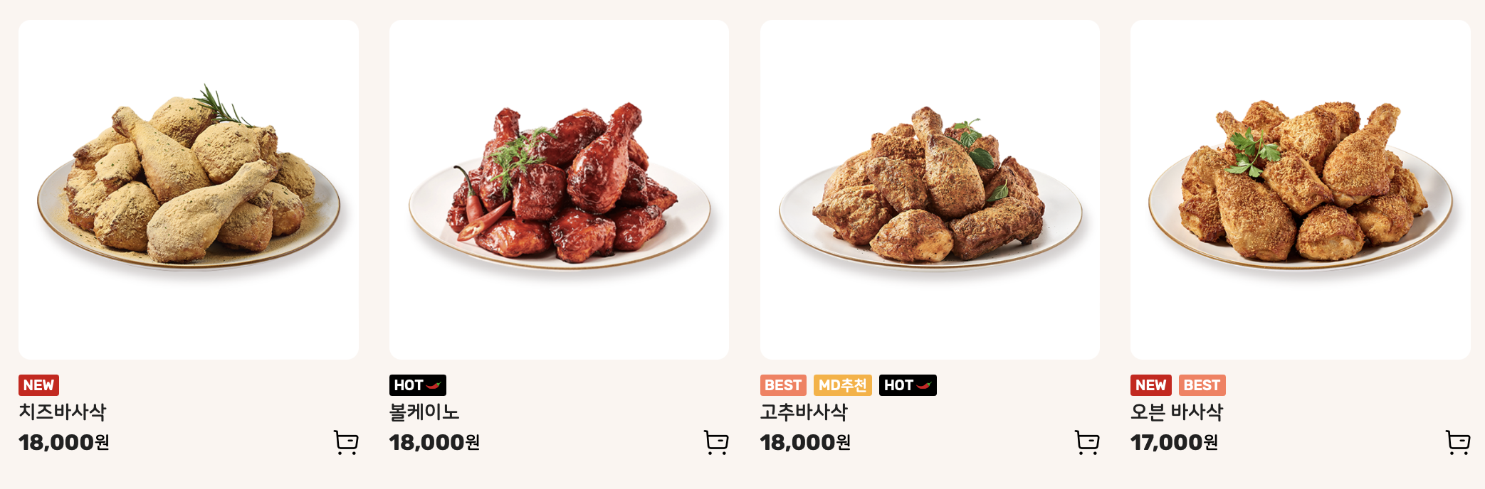 신메뉴: 남해마늘바사삭, 치즈바사삭, 고추바사삭