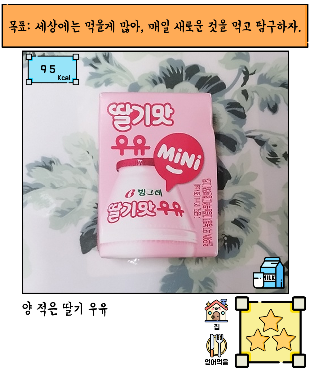 | [빙그레] 딸기맛 우유 MiNi ★★★☆☆ (0) | 2023.06.20 |